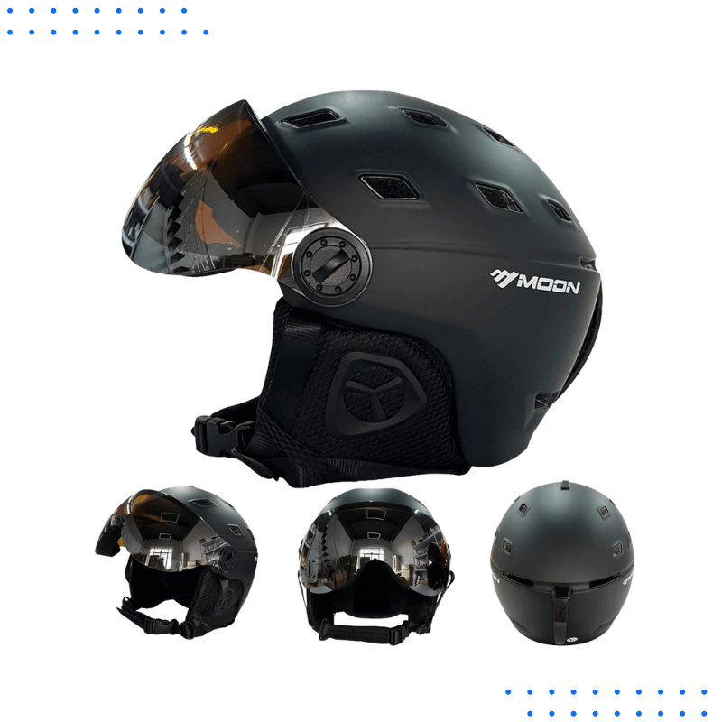 Stay safe on the slopes with this impact-resistant ski helmet. It combines a tough PC outer shell with an EPS foam interior, offering full protection and comfort for snowboarding, skiing, and ice sports — plus built-in goggles for clear vision.